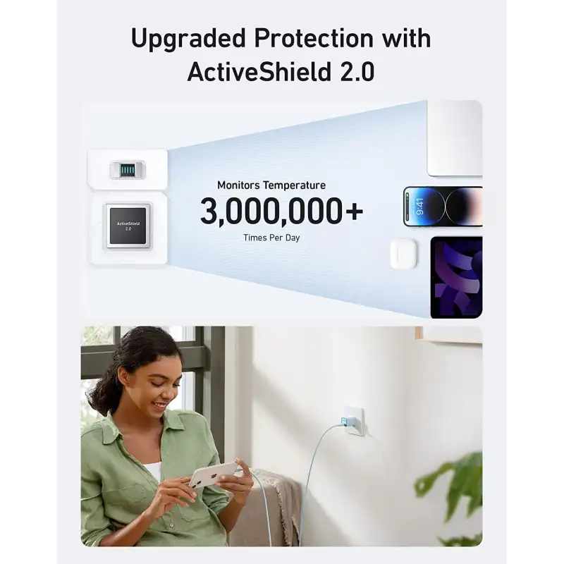 • Upgraded Protection with ActiveShield 2.0: Anker's proprietary technology safeguards your devices by intelligently monitoring temperature over 3 million times per day—that's twice as often as ActiveShield 1.0.
