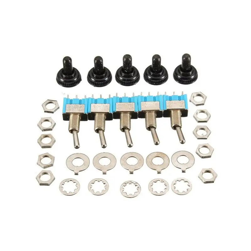 5Pcs 125V 6A ON/ON 3 Pin SPDT Toggle Switch With Waterproof Cover Cap