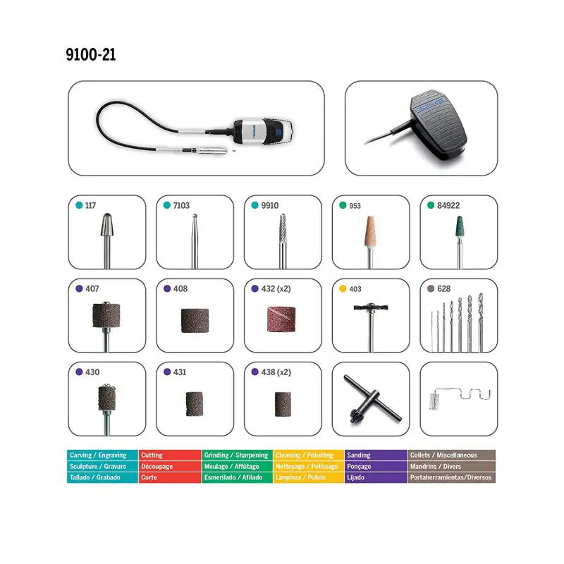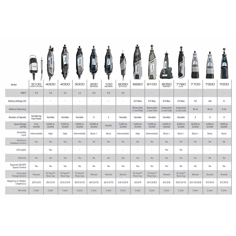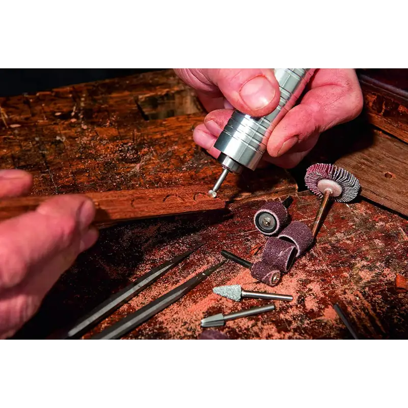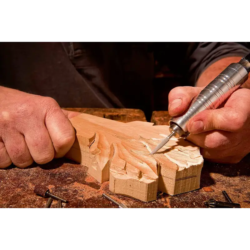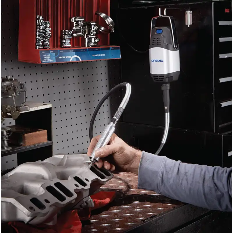 Power meets precision with the Dremel 9100 Fortiflex heavy duty flex shaft tool. The Fortiflex is designed to be the ideal rotary tool for people engaging in detailed projects requiring both power and precision. The tool’s powerful 2.5 amp(1/5 HP) motor provides high torque at low speeds making it perfect for power-carving, shaping, and grinding applications. Its flexible shaft includes a patented bearing system for durability and cool operation during extended use. The precision handpiece is engineered for control and comfort and its three-jaw chuck enhances versatility by accepting accessories with shank sizes from 0 to 5/32-inch. The Fortiflex is controlled with a variable-speed foot pedal and allows you to match tool speed to the application, hands-free.