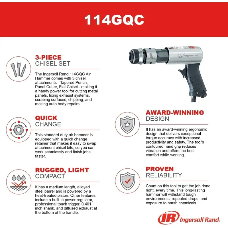Ingersoll Rand 114GQC Air Hammer - 3 PC Chisel Set with Tapered Punch